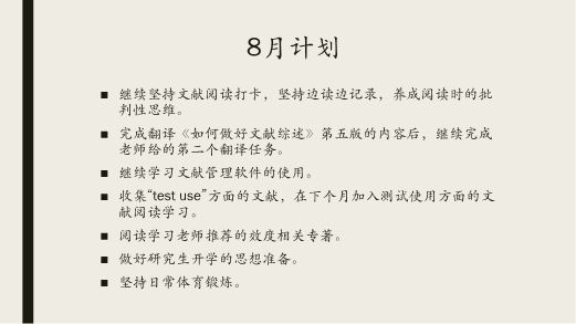 会议伊始,辜向东教授就本次团队分享交流会的主要内容和环节进行了简要介绍。接着团队八名成员依次围绕七月份的学习、工作、生活和八月份的计划进行了详细的汇报。在已取得核心论文发表、专著编审及翻译、书评撰写等研究进展的基础上,团队成员认为要继续坚持良好的学习习惯,不断反思不足之处。然后团队成员之间对汇报进行了同伴互评,挖掘了成员汇报的计划性和条理性,分享了阅读文献的经验及学习文献管理软件的技巧,探讨了统计方法和可视化分析操作等技术性问题,加深了团队协作重要性的认识,同时也指出了团队成员在学习过程中存在的不足。