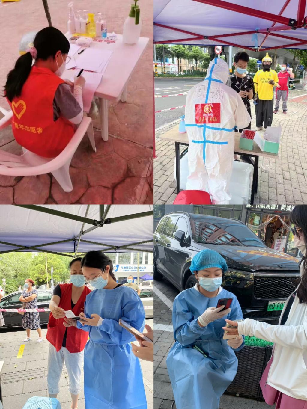 2020级英语专业本科生马仕玉在宁夏银川、李富立在云南红河、2021级英语专业本科生王思敏在甘肃张掖、黎珍妮在重庆开州、李瑞在四川成都、德语专业本科生王一凡在陕西西安担任志愿者,2021级汉语国际教育专业研究生周琳和2021级英语专业本科生陈惠环在疫情重灾区海南担任志愿者。入党积极分子2020级英语专业本科生姚榕在甘肃兰州做了一个月的志愿者,她表示:“在当志愿者的这些日子里,身上的红马甲虽然很轻,但我们肩上的责任却很重。经过这次志愿服务,我感受到了医护人员和在防控一线的工作者们的辛苦,同时内心更加激动,充满了责任感,希望可以为家乡做出一点贡献。”他们用实际行动践行“奉献、有爱、互助、进步”的志愿服务精神,彰显誓做前锋的青年担当。