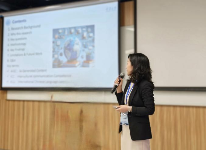 我院黎虹伶老师受邀参加了此次研讨会,并在会上进行了题为“用生成式人工智能赋能国际中文教育,提升跨文化交际能力”的主题发言,并与与会者深入探讨了生成式人工智能在国际中文教育中的应用及其对跨文化交际能力培养的促进作用。