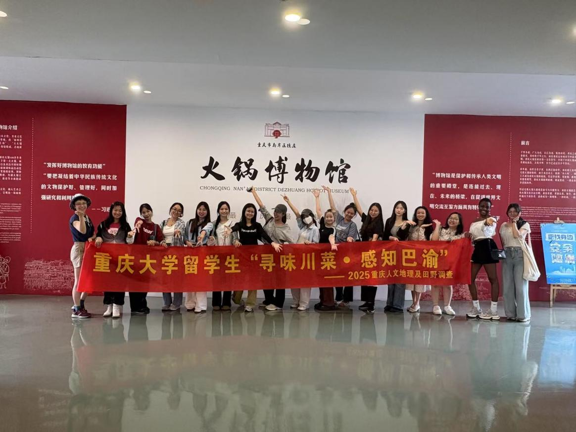 为深入挖掘重庆人文地理特色,传承巴渝饮食文化,2025年6月27日至7月4日,重庆大学汉语国际教育本科专业学生在"重庆人文地理及田野调查"课程中,以"川菜非遗"为主题开展系列实践活动。该课程采用"课堂研讨+实地调研"的双轨教学模式,同学们在理论研讨的基础上,先后前往重庆德庄火锅博物馆和磁器口陈昌银麻花博物馆进行田野调查,通过实地探访与互动体验,感受非遗技艺的匠心传承,理解川菜文化背后的历史脉络与人文精神。