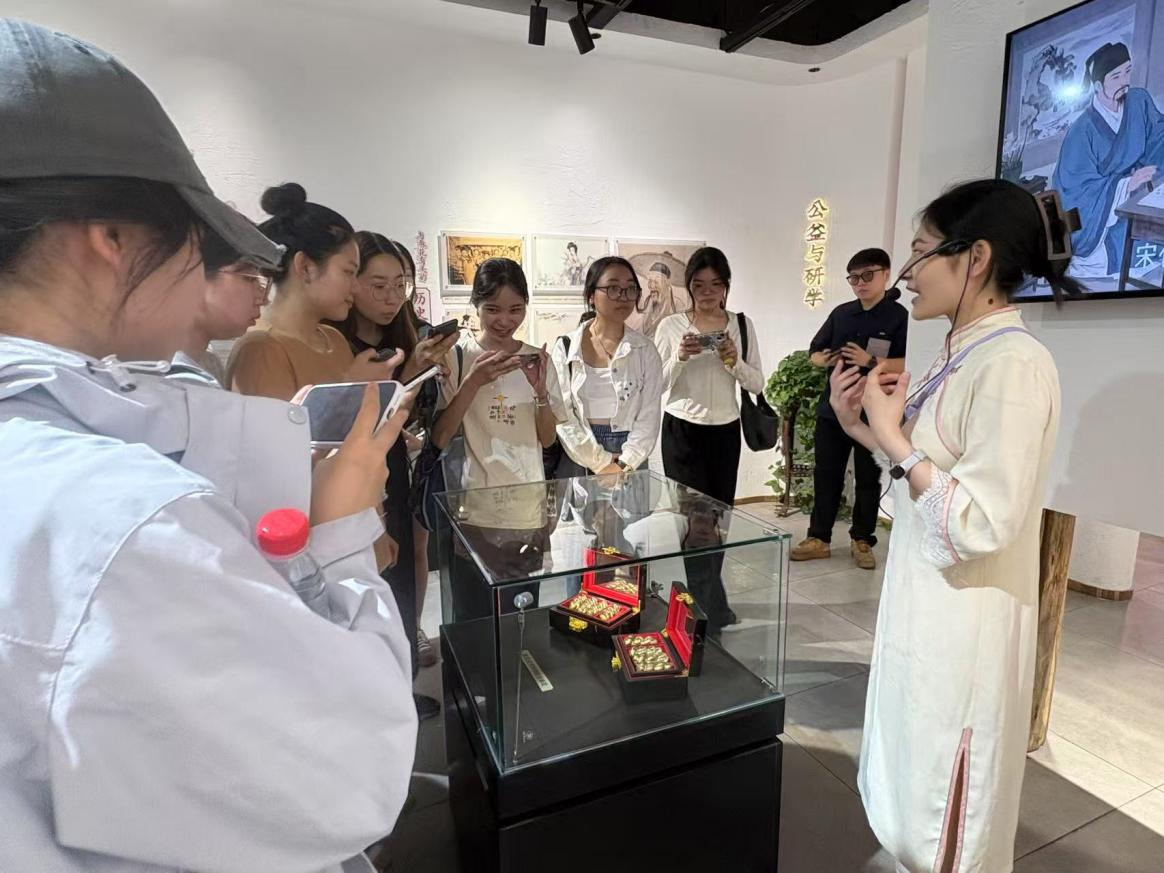6月27日,课程实地调研首站走进重庆德庄火锅博物馆。在前期课堂研讨中,同学们已系统学习了重庆火锅的发展历史与文化内涵。来到现场后,作为重庆火锅的代表性品牌,德庄博物馆通过丰富的展陈和多媒体展示,生动展现了重庆火锅从码头小食到世界美食的发展历程。同学们尤其对“德庄大火锅”的吉尼斯纪录和“李氏辣度”标准化工艺赞叹不已。