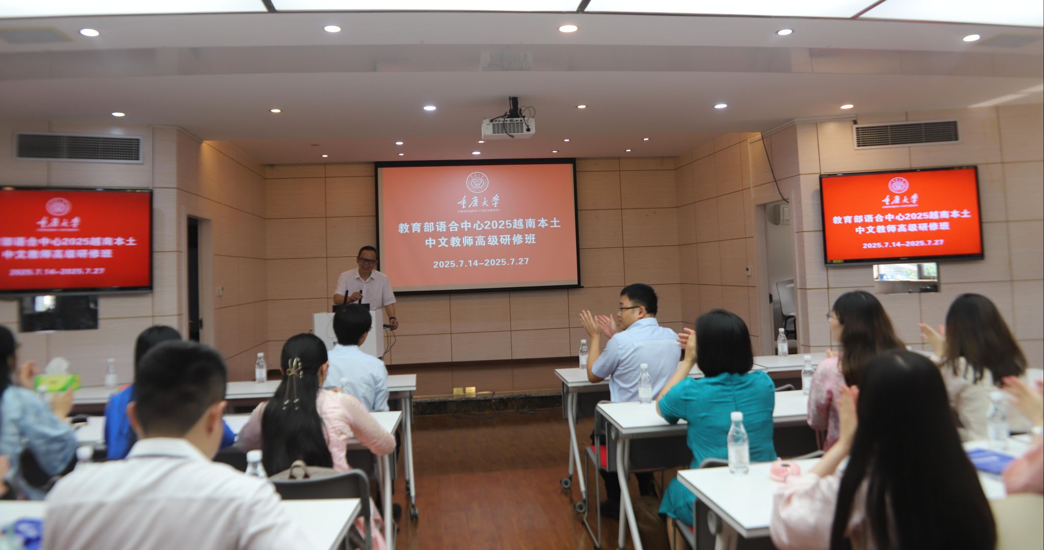 莫启扬院长首先代表学院致欢迎辞。他表示,此次越南高校中文教师培训班的举办,是重庆大学服务“一带一路”倡议、推动中越人文交流的具体实践。期待以此次合作为契机,进一步深化与越南高校的学术互动,共同培养更多精通中文、了解中国文化的国际化人才。