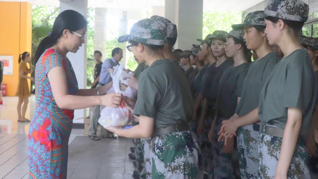 随后,到场的学院领导、老师在几名学生会成员的协助下向参训的新生们发放了学院精心准备的慰问品,并组织新生们在学院楼架空层的阴凉处原地休息。