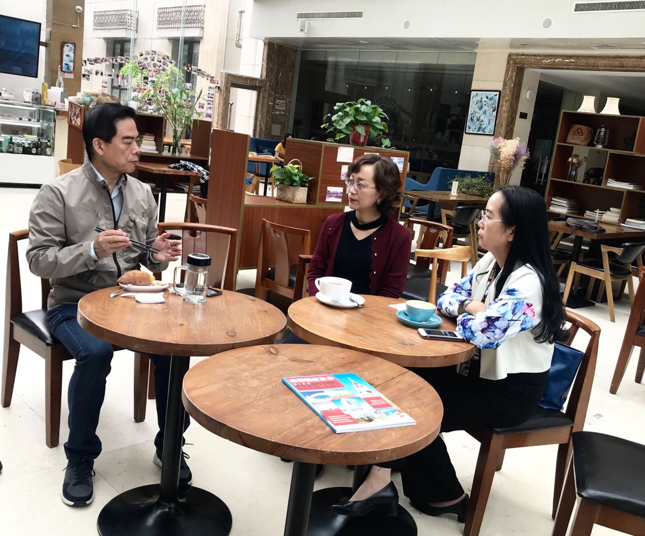 下午,陈肖纯校友和黄萍教授再次进行了交流,就充分利用美国高校资源进行项目合作、学生实习基地建设、外籍教师招聘等事宜进行了沟通。
