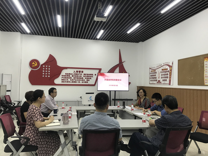 本学期开学以来,按照学校党委“不忘初心、牢记使命”主题教育活动的总体部署,外国语学院党委高度重视,结合学院工作实际,制定了《外国语学院开展“不忘初心、牢记使命”主题教育实施方案》,成立了学院“不忘初心、牢记使命”主题教育领导小组及工作小组,通过党委会、支部书记工作会议、全院教工大会等会议,开展了多层次、全方位的动员和部署,要求各支部深入开展主题教育活动,真正做到理论学习有收获、思想政治受洗礼、干事创业敢担当、为民服务解难题、清正廉洁作表率;要求全体教师党员牢固树立“四个意识”、坚定“四个自信”、做到“两个维护”,坚定为党育人、为国育才的初心,以实际行动认真落实立德树人根本任务。