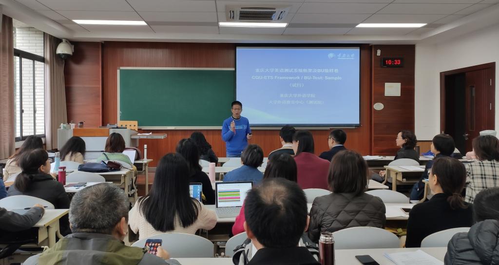 2019年11月20日,由外国语学院牵头的《重庆大学大学英语测试系统框架》(试行版)及样题发布会在虎溪校区D1214教室成功举办,掀起了新一轮的大学英语教学改革。测试体系的改革旨在全面、科学地评估我校学生英语水平状况,反馈英语课程教学改革质量,进一步推动大学英语课程教学改革,从而更有效地培养高素质国际化人才,全面提升学生英语综合应用能力,拓展学生国际视野,提升学生国际交流能力,并为学生未来生活、职业发展及学术研究打好坚实的语言基础。