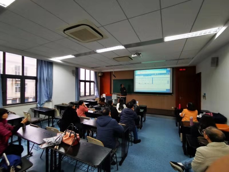 随后,汪兴富老师对COCA语料库的发展和应用向与会教师做了详细生动地推介。在他的介绍中,大家了解到COCA语料库自2008年由Davis教授推出后,现已陆续推出了16个语料库及多个资源。在汪老师的本次讲座中,他首先展示了强大的在线免费COCA语料库资源的词汇网,并论述该词汇网对英语写作起到的辅助作用。他特别论及写作中需注意所用词语的词源分布,同时借助内嵌的WordNet同义词及其COCA词序作词语最优选择,并高效使用其高频搭配词和索引行等信息对学习者写作提供直观的语境参照,这与教、研息息相关,引起了各位老师的极大兴趣。大家边听讲边提问,将本次教研会推进讨论的热潮中。老师们通过与汪老师的探讨,一致认为COCA语料库不仅对教学而且对科研也有极大的应用与推广价值。最后,汪老师还与参会老师探讨该界面在英语作文评分方面所起的参考作用。