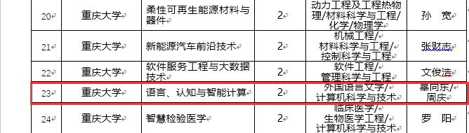 2019年11月22日,重庆市教育委员会公布了2019年研究生导师团队名单,由外国语学院辜向东教授、计算机科学与技术学院周庆教授领衔的语言、认知与智能计算研究生导师团队名列其中。设立研究生导师团队的目的旨在进一步加强研究生教育和导师队伍建设,充分发挥研究生导师团队在全面推进 “双一流”建设和高等教育内涵式发展中的引领示范作用。