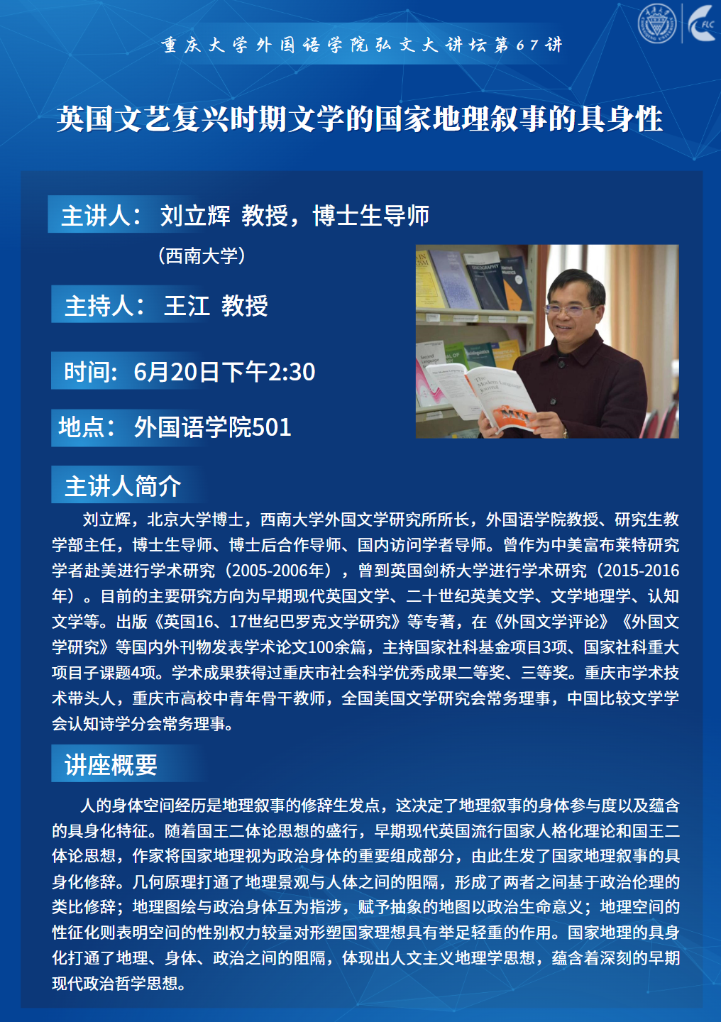 讲座|英国文艺复兴时期文学的国家地理叙事的具身性