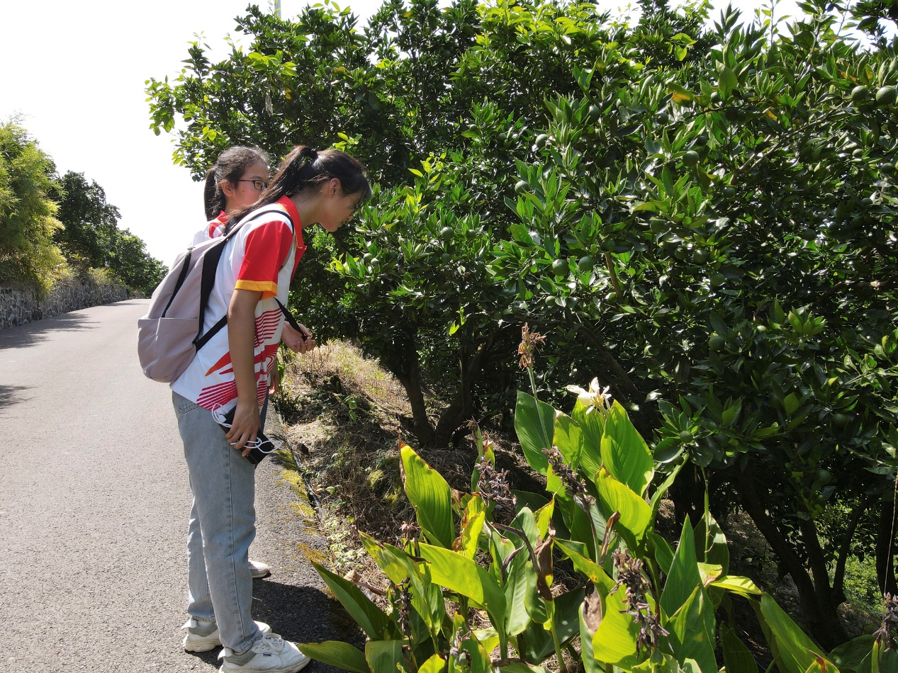 实践团成员登上“三峡橘海”景区最高点所建有的一座仿古建筑的观景台,纵观景区全貌。“三峡橘海”景区是长江边的一个大型孤岛,主体景观是万亩柑橘果园。该橘海是忠县将“新农村建设”和乡村旅游发展相结合创出的示范区,是忠县50万亩优质柑橘产业化项目的重要组成部分。近年来,“三峡橘海”景区积极配合忠县举办柑橘文化艺术节,大力发展乡村农家乐,挖掘地域特色,开发突出忠县文化特色的旅游商品,加强宣传生态游和田园风光游,推动农业休闲生态旅游产业的可持续发展。