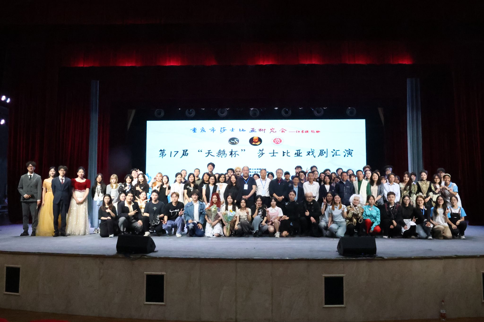 2025年5月17日,由重庆市莎士比亚研究会主办,重庆师范大学外国语学院承办的重庆市莎士比亚研究会第17届“天鹅杯”莎士比亚戏剧汇演在重庆师范大学校友会堂落下帷幕。本次赛事汇聚了来自8所高校的10支参赛队伍,重庆大学学生英语戏剧社代表队凭借对经典剧目《爱的徒劳》(Love's Labour's Lost)的精彩演绎荣获三等奖。