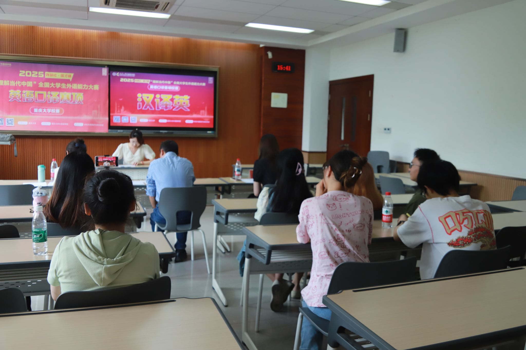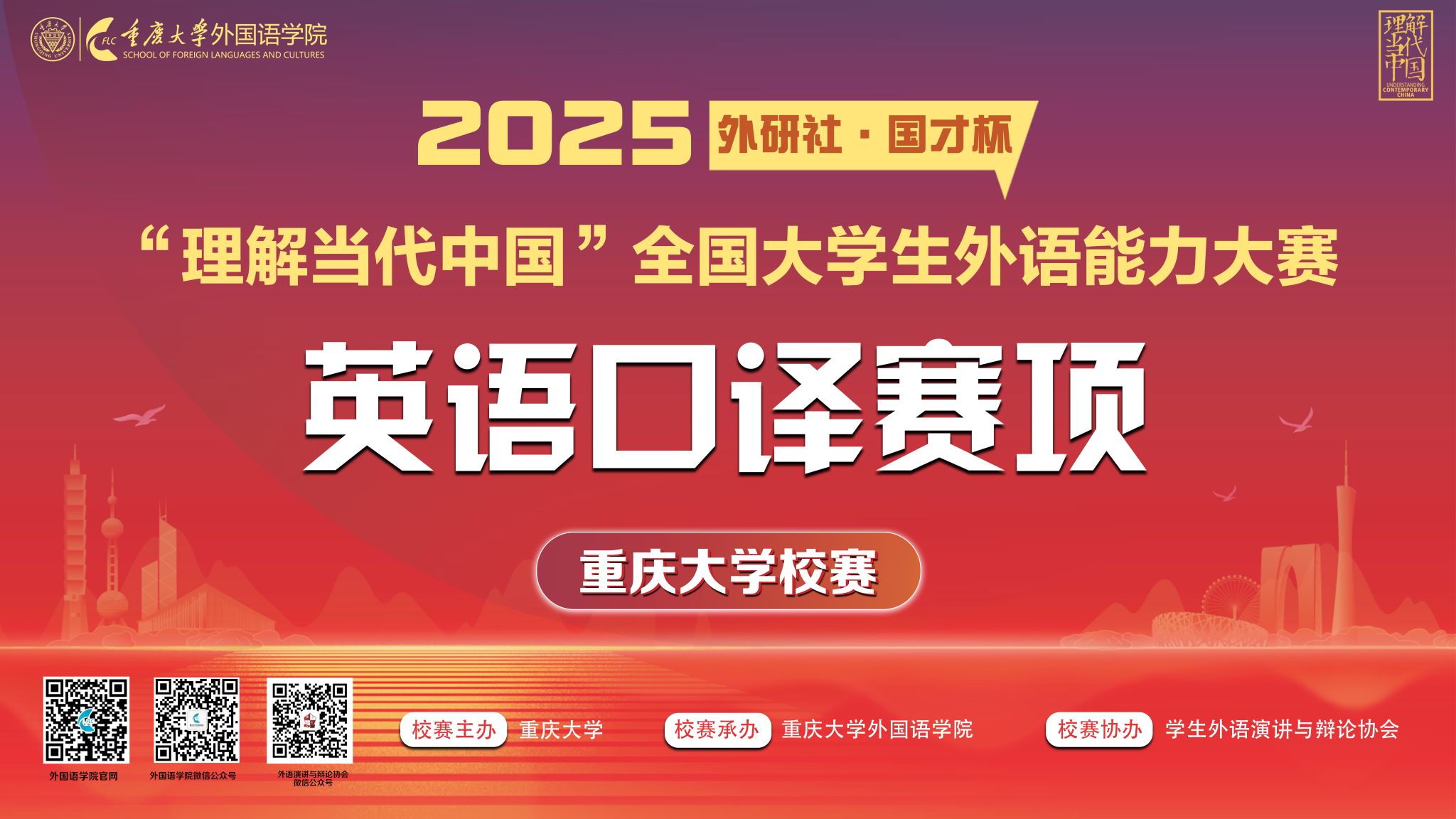 2025年6月5日14时,2025“外研社・国才杯”“理解当代中国”全国大学生外语能力大赛英语口译赛项重庆大学校决赛在重庆大学虎溪校区第一教学楼D1215教室举办。本场比赛由重庆大学主办,开元网页版承办,学生外语演讲与辩论协会协办,吸引了全校10个学院12个专业(类)的学生积极参与。
