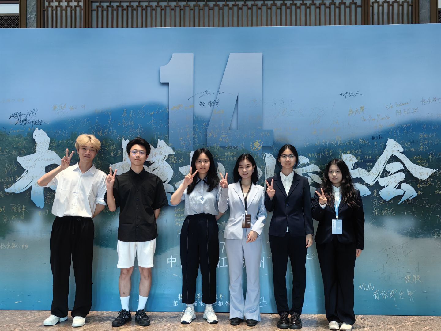 在四天紧凑而充实的会期中,我校代表团立足模拟场景,紧扣现实议题,最终脱颖而出获得最佳代表团奖项,刘子夏同学斩获杰出代表奖(Outstanding Delegate),段桢桢、郭慧中同学荣获荣誉提名奖(Honorable Mention),关宇皓同学获得最佳文件写作奖(Best Document Writing)。