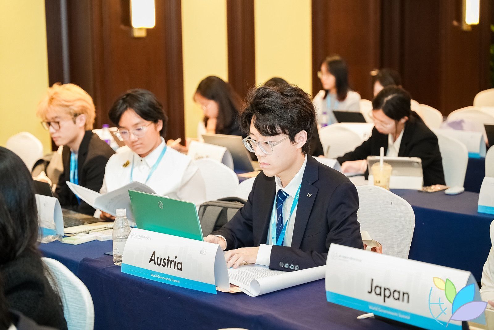 我校本科生院2024级电气信息类关宇皓、外国语学院2023级英语专业丁雨暄和2024级英语专业刘沃忱在英文委员会World Governments Summit(世界政府峰会)会场里,分别以奥地利、日本、希腊代表的身份,围绕“以数字正义创设美好社会”议题,努力与其他发达国家达成协作,并与发展中国家开展“南北对话”,为共同推动全球数字技术公平发展与减少数字信息犯罪提供可行性方案。