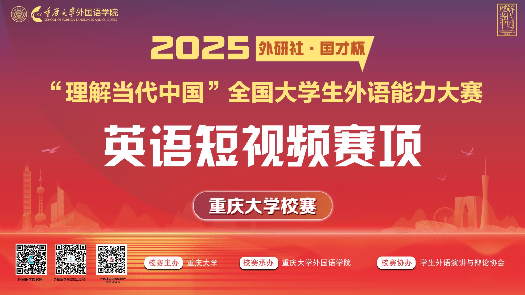 近日,2025年“外研社·国才杯”“理解当代中国”全国大学生外语能力大赛短视频(英语)赛项校赛结束。本次赛事由重庆大学主办、开元网页版承办、学生外语演讲与辩论协会协办,吸引了全校26个学院近50个专业(类)各年级的77个团队和个人参赛。